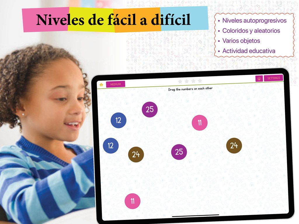 Diseñada para el nivel preescolar y adecuada para niños de 2 a 4 años, esta aplicación agiliza el proceso de aprendizaje, ahorrando un tiempo valioso que normalmente se dedica a ejercicios impresos. La rutina de aprendizaje rápida e interactiva que ofrece la aplicación está diseñada para adaptarse perfectamente a un horario educativo apretado. A medida que profundizamos en los seis ejercicios distintos integrados en la aplicación, se hace evidente cómo contribuyen a aumentar la confianza de un niño y fomentar una interacción alegre con los números.