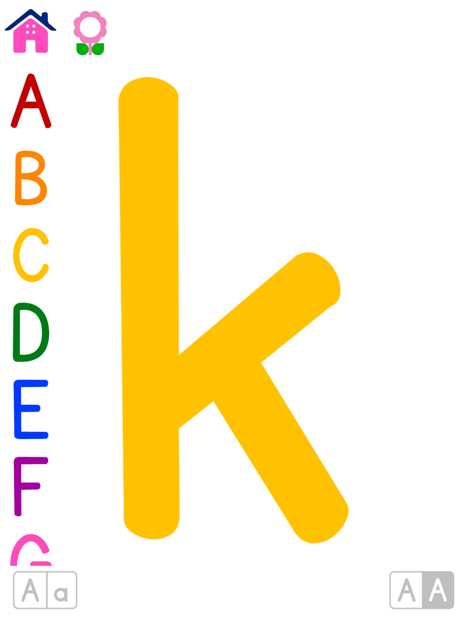 Las características clave de Colorful ABC contribuyen aún más a su eficacia como herramienta educativa. Se utiliza una fuente cuidadosamente seleccionada para ayudar a memorizar las formas del alfabeto, con especial atención a minimizar las distracciones eliminando los controles de la interfaz de usuario. El uso de colores cuidadosamente elegidos tiene como objetivo mejorar la experiencia de aprendizaje, mientras que la inclusión de letras mayúsculas y minúsculas garantiza un enfoque educativo integral.