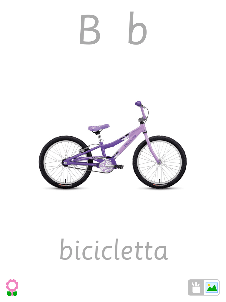 “A di Albero” offre una scelta di quattro font attentamente selezionati per migliorare la memorizzazione delle forme dell'alfabeto.